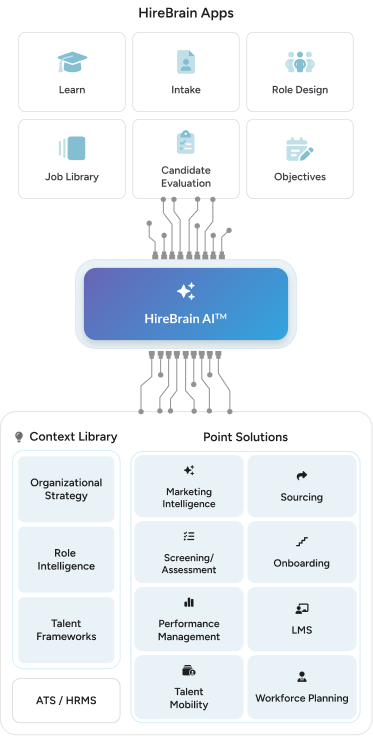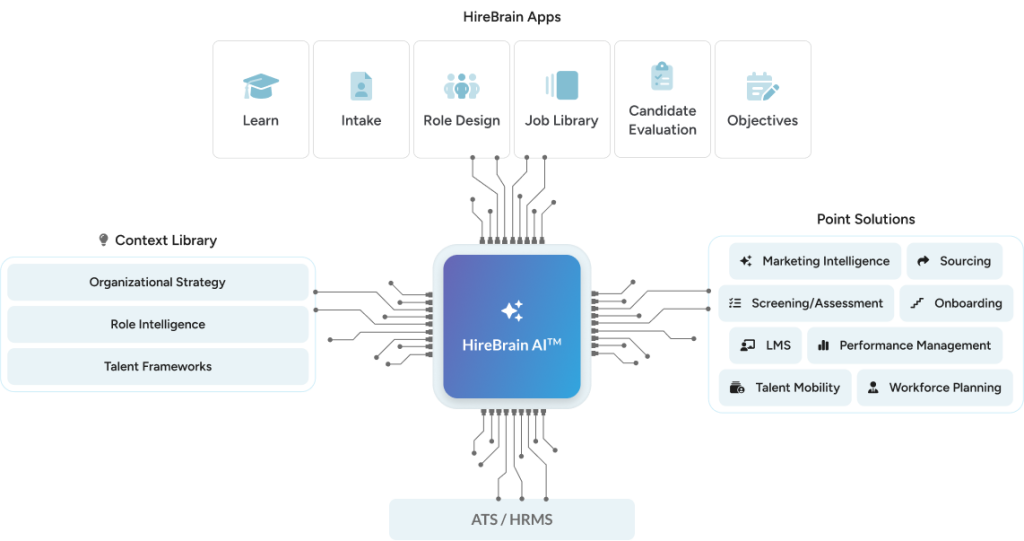 HireBrain isn’t another point solution. It’s an intelligent layer that integrates with your ATS and HR tools to unify strategy, structure, and stakeholder experience.